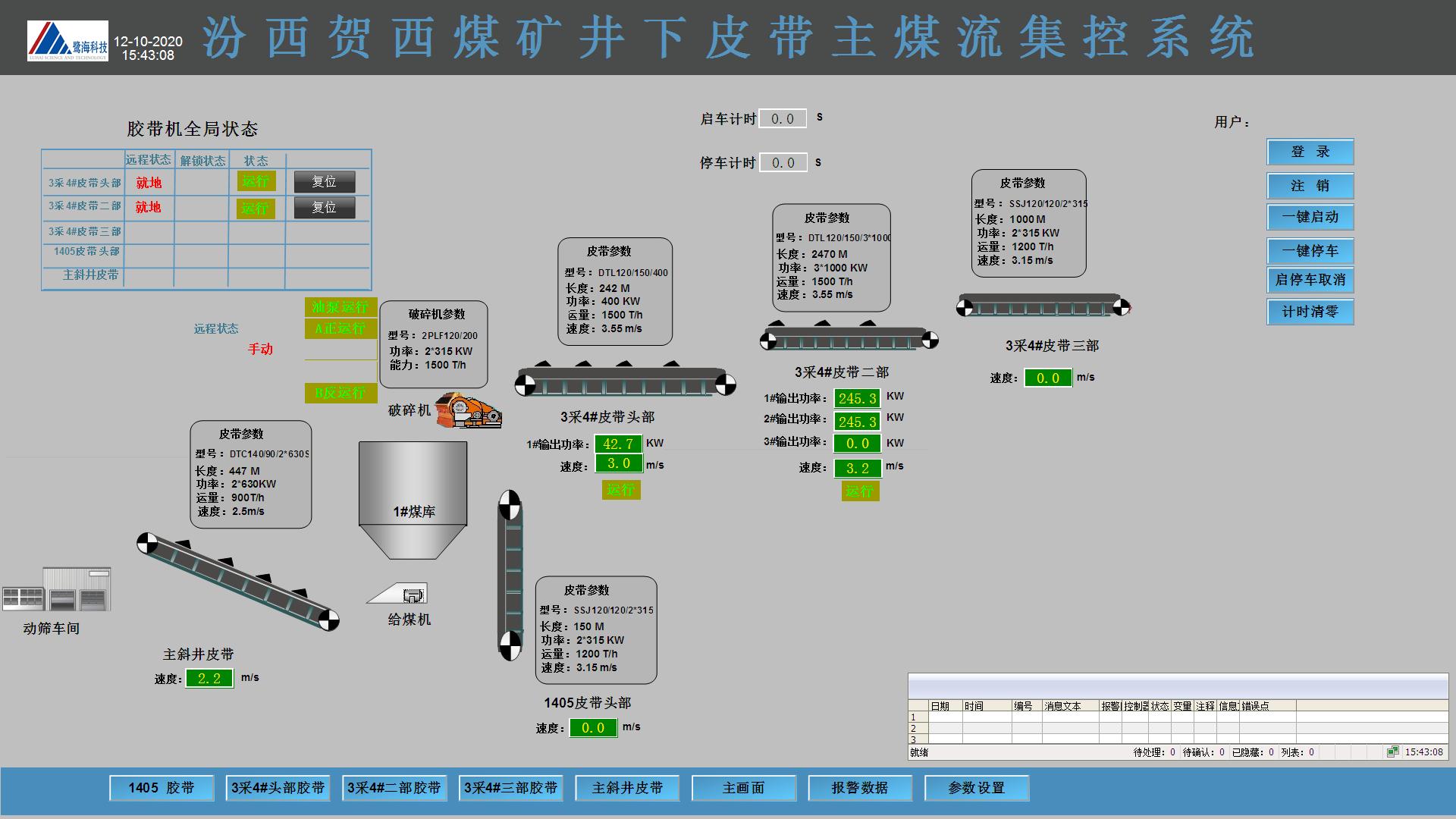 地面集控數(shù)據(jù)中心實現(xiàn)煤流運輸系統(tǒng)集中遠程自動控制,實現(xiàn)單控、聯(lián)控、順序啟停、一鍵啟停。達到無人值守,有人巡檢。